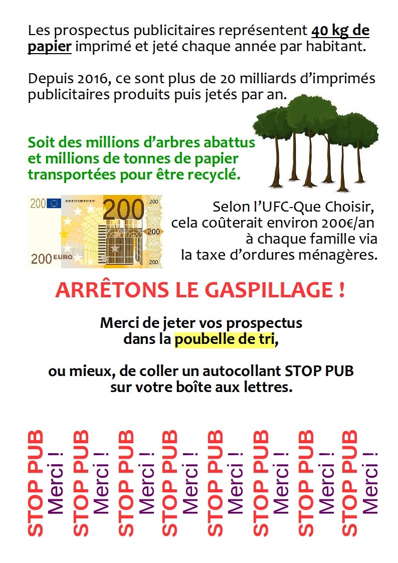 Voici une affiche pour convaincre vos voisins de refuser la pub. A afficher dans le hall de l’immeuble, en prévoyant du scotch pour qu’ils puissent le coller. Un geste simple et vraiment efficace
